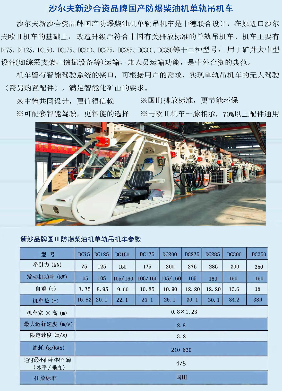 沙尔夫新沙合资品牌国产防爆柴油机单轨吊机车